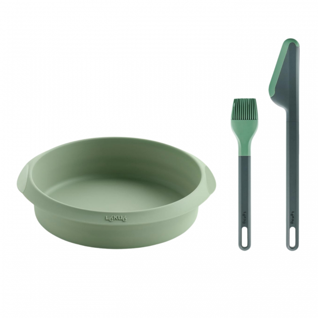 The kit includes a silicone mold, a pair of tongs and a brush. The 100 percent silicone mold features a non-stick surface for even results and easy cleaning. It fits 5 liter air fryers. The tongs have silicone-coated tips that do not scratch the surface, and the brush makes it easy to distribute oil or sauce.