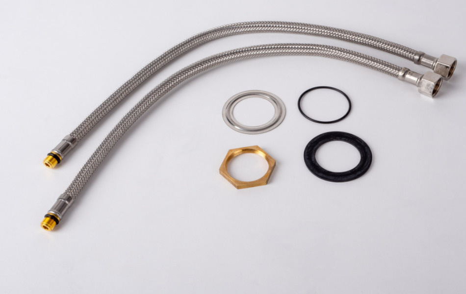 The mixer tap comes with two flexible stainless steel hoses, ready to connect to a 12 mm PER water pipe. A practical and elegant solution for mobile 12V water systems.