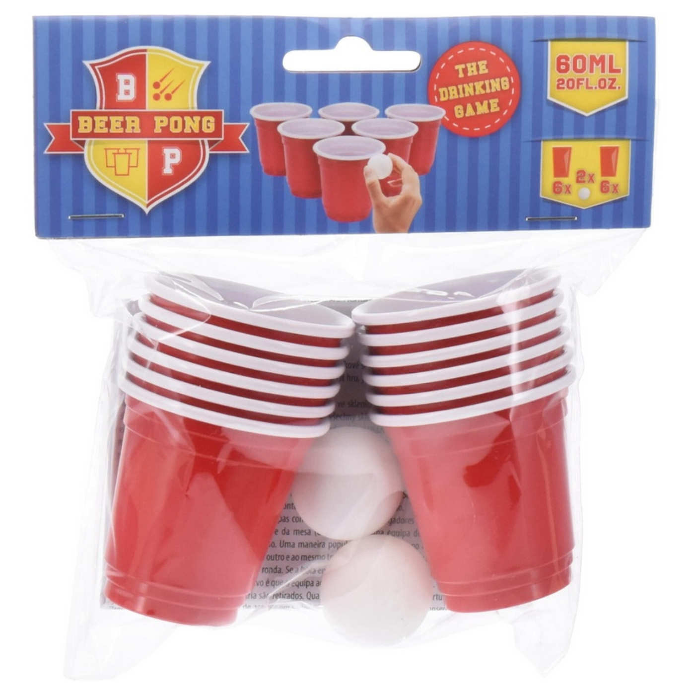 This beer pong set includes 10 cups of 60 ml each and 2 balls. Please note that the set is smaller than the standard size, making it ideal for compact play at home, at parties, or while traveling. Easy to pack and quick to set up, a fun way to challenge friends in classic beer pong.