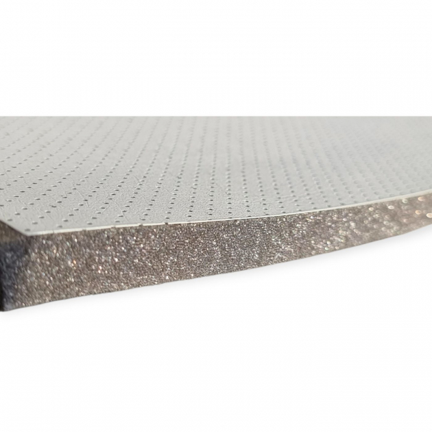 Cabin and interior sound insulation material sold by the meter with durable perforated vinyl surface. Designed for sound insulation and interior lining of walls, ceilings and doors in motorhomes, campervans, boats, transport vehicles, tractors, construction machinery, buses and forklifts.