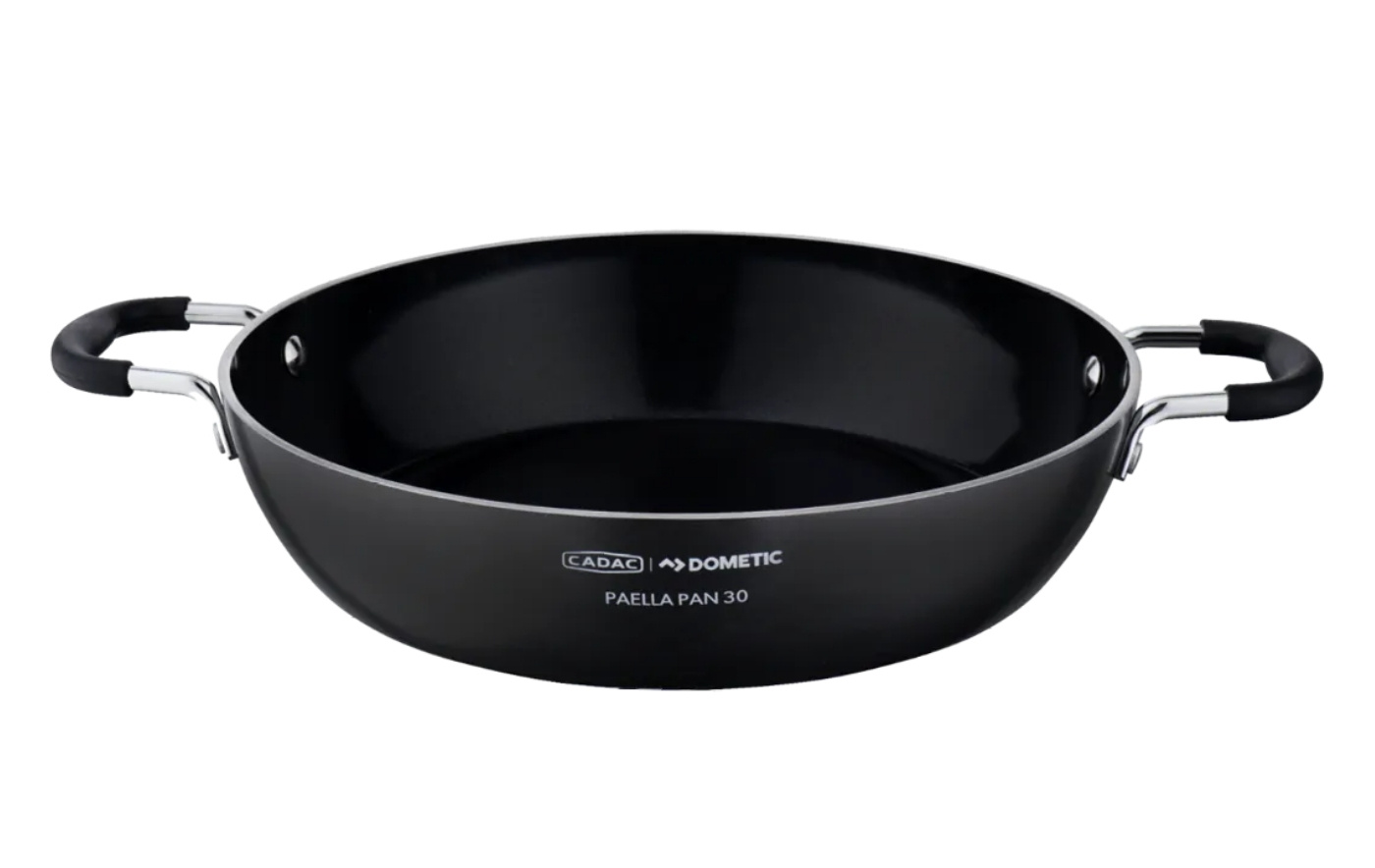 The pan is equipped with a lid and stainless steel handles that provide a stable grip during cooking. Perfect for dishes such as paella, risotto, pasta, or breakfast when you are dining together in a group.
