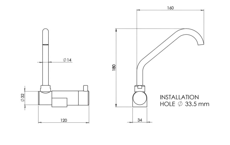Durable single lever mixer in chrome-plated brass, designed for motorhomes, caravans, and boats. The spout folds and swivels to save space when not in use. The mixer comes with two metal braided hoses with 3/8-inch thread for hot and cold water. Suitable for 12V systems, easy to install in kitchens or bathrooms.
