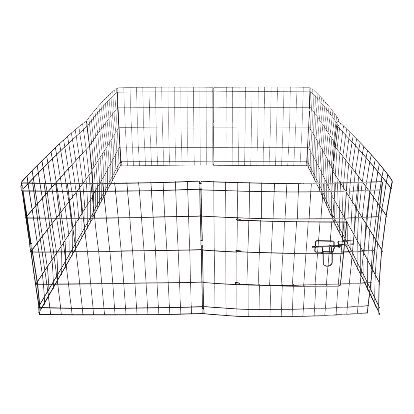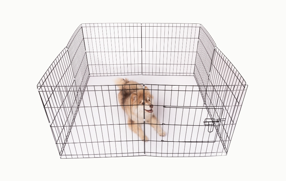 The eight panels are easy to assemble and can be arranged in different shapes depending on space and needs. The design makes it easy to adapt the pen for both puppies and adult dogs.