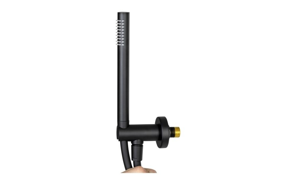 Elegant and complete shower equipment from the Black is Beautiful series, ideal for motorhomes, caravans, and boats with 12V system. The set includes a shower head with 30 mm diameter and 220 mm length, a 150 cm hose, and a wall mount. The design is modern and stylish, and the materials are high-quality brass for long-lasting use. No micro switch is included, ensuring simple and reliable installation.