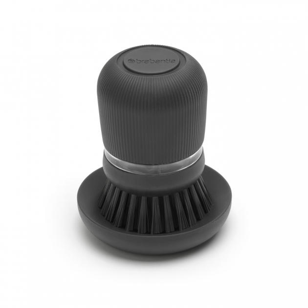 Wash dishes easily with this dish brush with a built-in soap dispenser. Press the button to release dishwashing liquid directly into the brush and continue scrubbing without having to pick up the bottle.