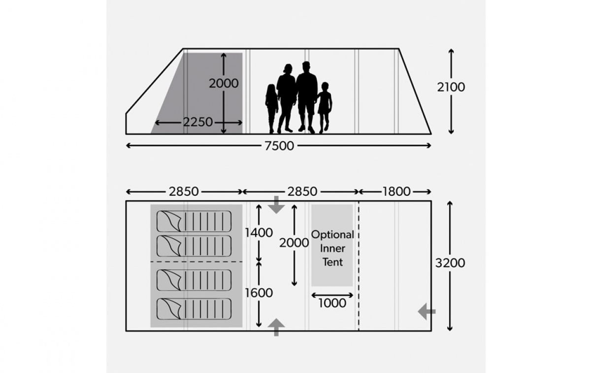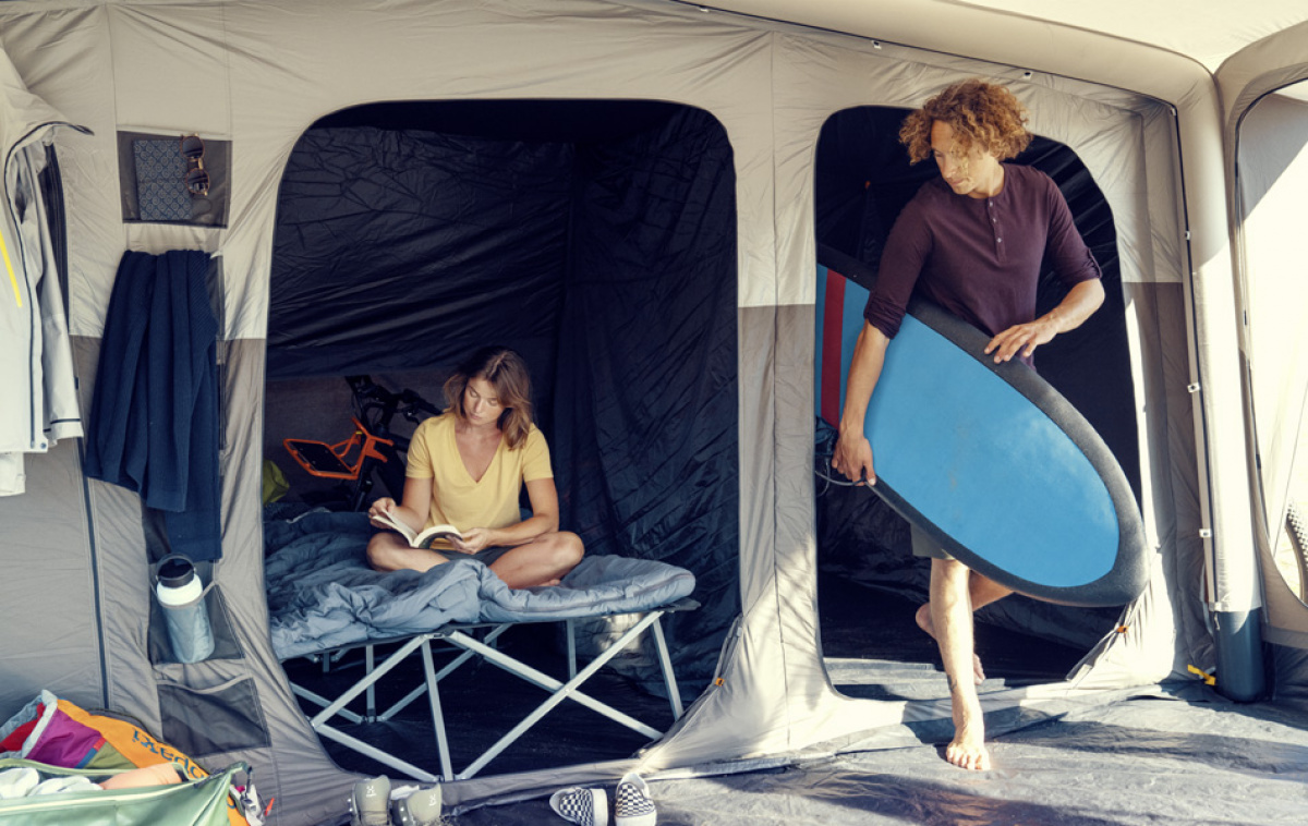 The Ascension FTX 401 TC is equipped with several practical storage pockets, a protected rain entrance, and blackout inner tents that block the morning sun, providing a better night's sleep.