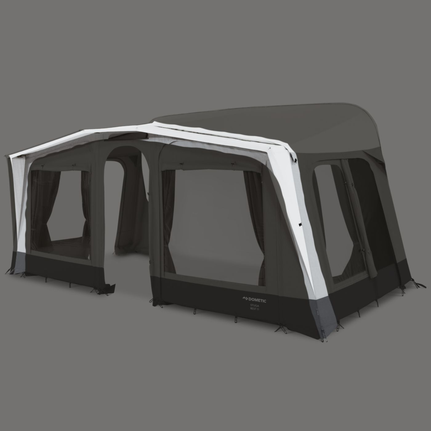 Dometic Easy Pitch is the smart accessory that simplifies the setup of your Dometic Stuga Rest. On top of the awning fabric there is a zipper where you easily attach the Easy Pitch tube, which runs along the entire roof down to the ground on both sides of the front. Once attached, you inflate the tube with the included hand pump - the air tube lifts the fabric for you and provides enough height and stability for you to install the steel frame without lifting the heavy canvas yourself.