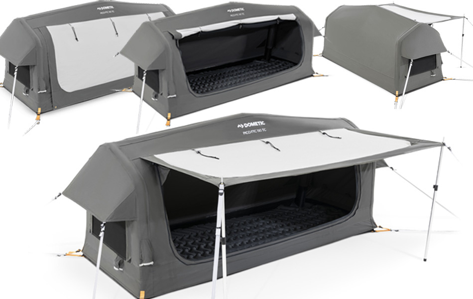 - Integrated inflatable mattress with separate external valve provides built-in comfort