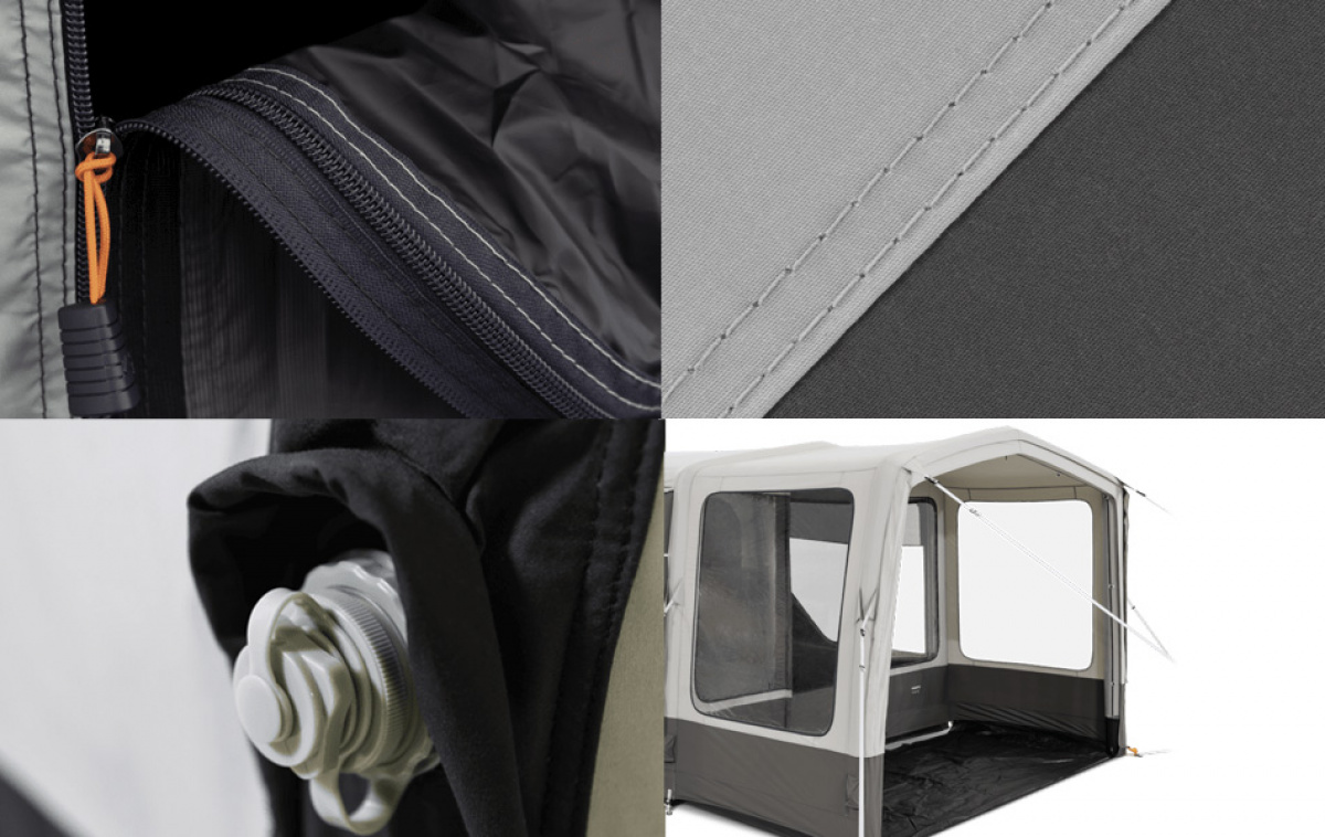 The tent features Dometic's innovative Air Frame technology, making setup quick and easy with multi-point inflation. With just a few pumps, the tent stands stable and ready for use. The large panoramic windows let in plenty of natural light and can be easily covered for extra privacy.