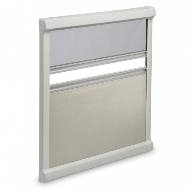 The system comes pre-assembled for easy adaptation to most leisure vehicle windows. The blackout blind and insect screen can be adjusted separately and to exact positions, providing maximum flexibility. The insect screen can also be fixed both at the top and bottom, depending on need.