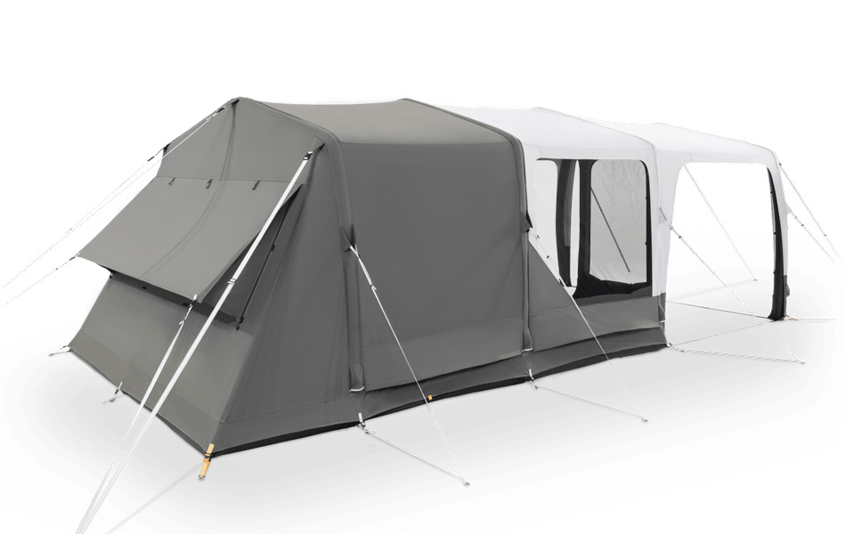 Santorini FTK 4X8 TC is equipped with Dometic's Air Frame technology for quick and easy setup with just a few pumps, ensuring stability and durability. The large panoramic windows provide natural light and can be covered for extra privacy. Ventilation is adjustable, and the fully sealed doors and windows with mosquito nets effectively protect against both insects and weather.