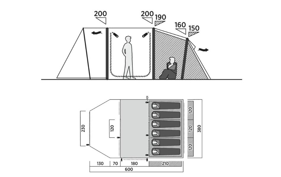 - Sewn-in groundsheet protects against draughts and insects