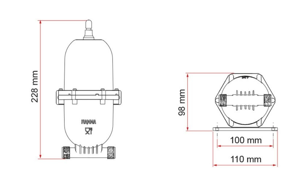 The A20 is pre charged and can easily be adjusted with a compressor to suit different systems. It can be mounted both horizontally and vertically and is made from certified materials for safe and long lasting use.