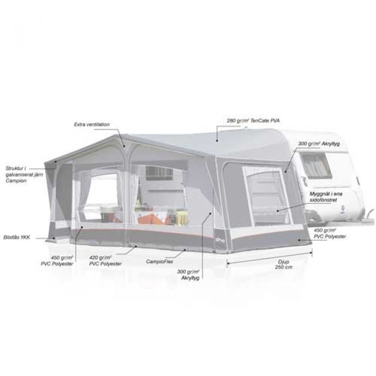 This awning has now established itself as Inaca's best-selling acrylic awning in Europe. The sand awning comes in new colour combinations of anthracite with light grey and has mosquito nets in the windows.