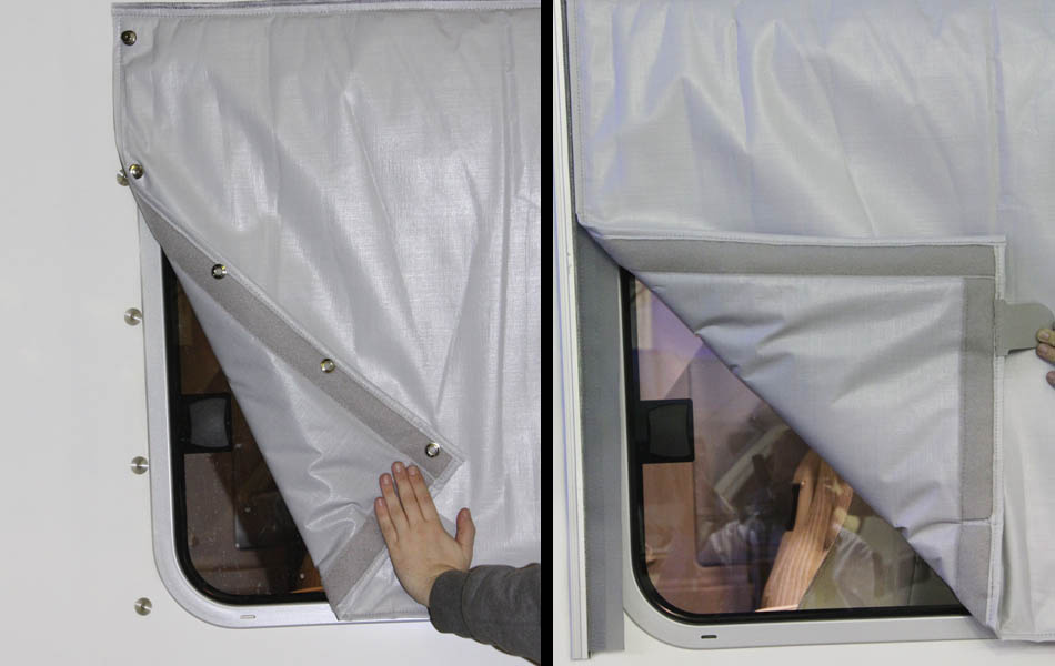 - Keder rail (not included): Mount the keder rail on the vehicle (screw or glue it in place). Then use the included textile keder with Velcro and press it against the insulation mat (which already has the matching Velcro attached). Finally, attach the textile keder, which is connected to the insulation mat, into the installed keder rail.