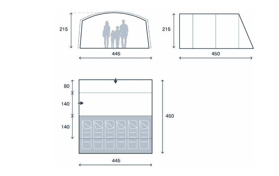 The large front canopy offers extra space for relaxation or storage, while the darkened sleeping area and multiple doors at the front and side provide both comfort and flexibility. Dawlish is available in several sizes and is equally suitable for short trips and longer holidays.