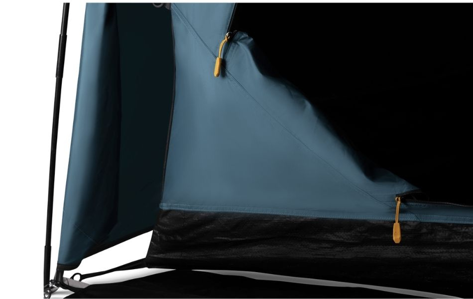 The tent has a separate inner tent that provides a comfortable sleeping climate and a protected vestibule area that offers extra space for gear storage or cooking. Entrances both at the front and the rear make it easy to enter and exit while also improving ventilation. Ventilation openings in the roof help create better airflow and reduce condensation.