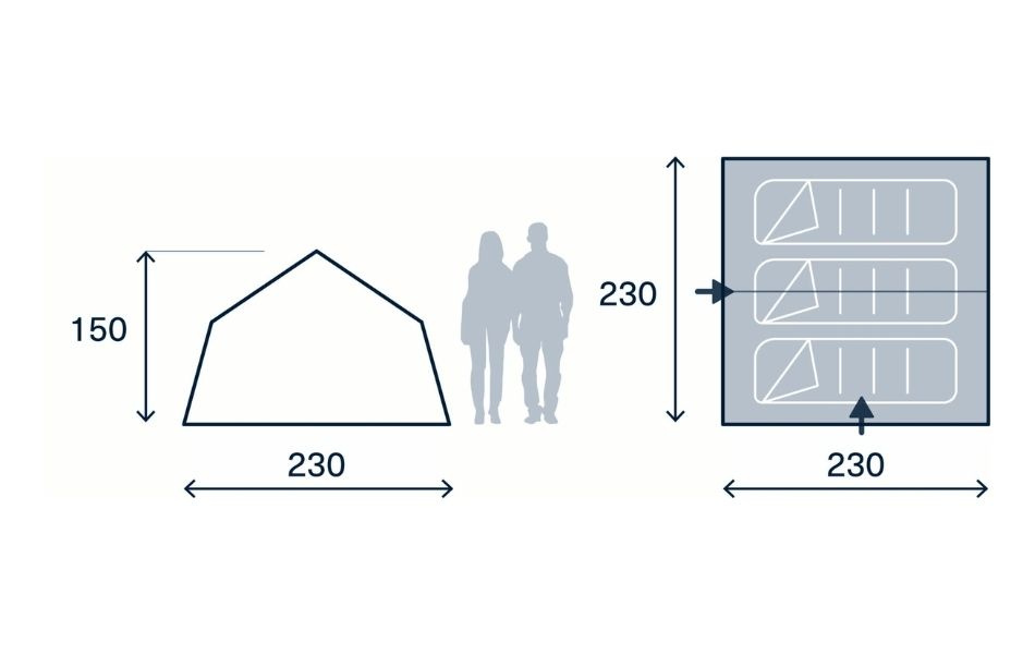 The tent is made from lightweight silicone coated 68D polyester with aluminium poles, giving low weight and small pack size without compromising durability. The included door canopy with poles provides extra protection at the entrance and makes the tent as practical as it is adventurous.
