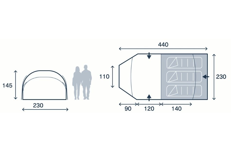 A protected tunnel entrance provides extra space for gear storage and cooking while also protecting against wind and rain. The double doors make it easy to enter and exit the tent from multiple directions and improve ventilation. Interior organiser pockets and a practical gear loft make it easy to keep equipment organised.