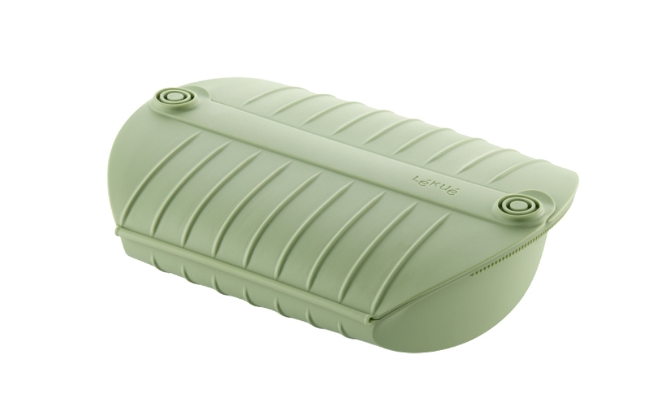 Steam quickly while preserving flavor and juiciness with this steam cooker with tray. Easily prepare salmon or vegetables in just a few minutes in the microwave or oven.