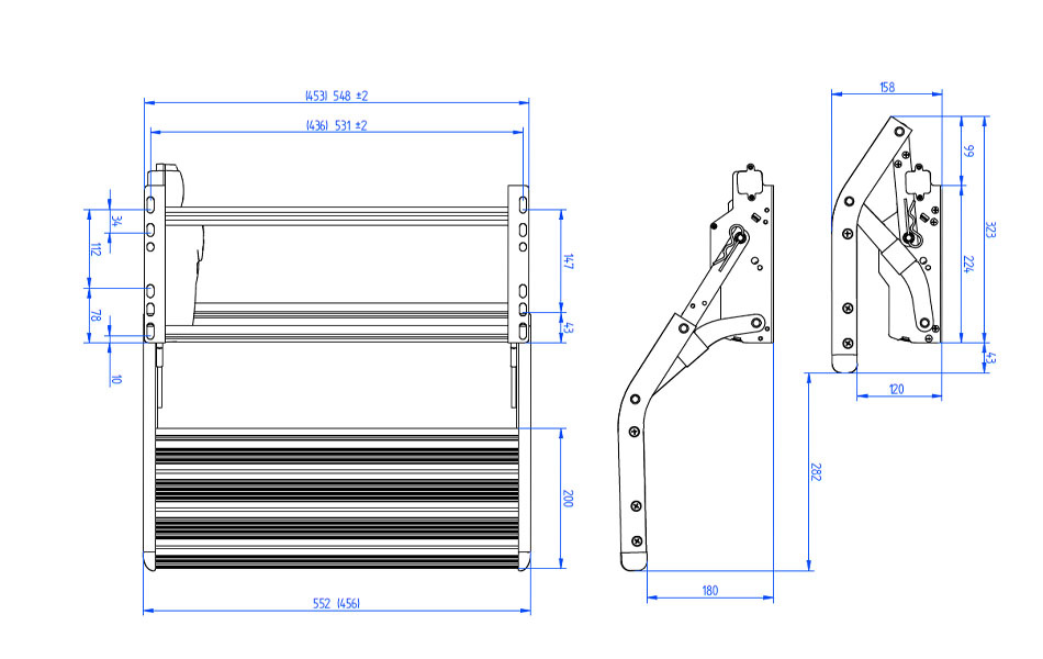 The step is smoothly operated with a 12V switch and has a built-in safety system to protect against pinch injuries. The step width is 455 mm, depth 360 mm, and height 158 mm (dimensions refer to the retracted step). The weight is only 5.7 kg, making it easy to handle and install without problems.