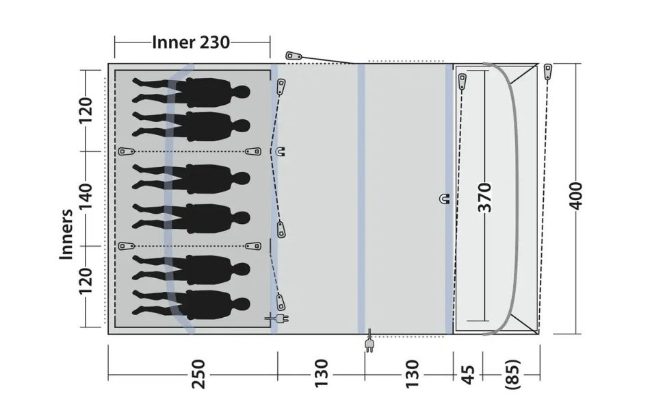 - Integrated patent-pending Outwell Light System provides elegant, effective lighting inside tent (powered via USB-C, power source not included)