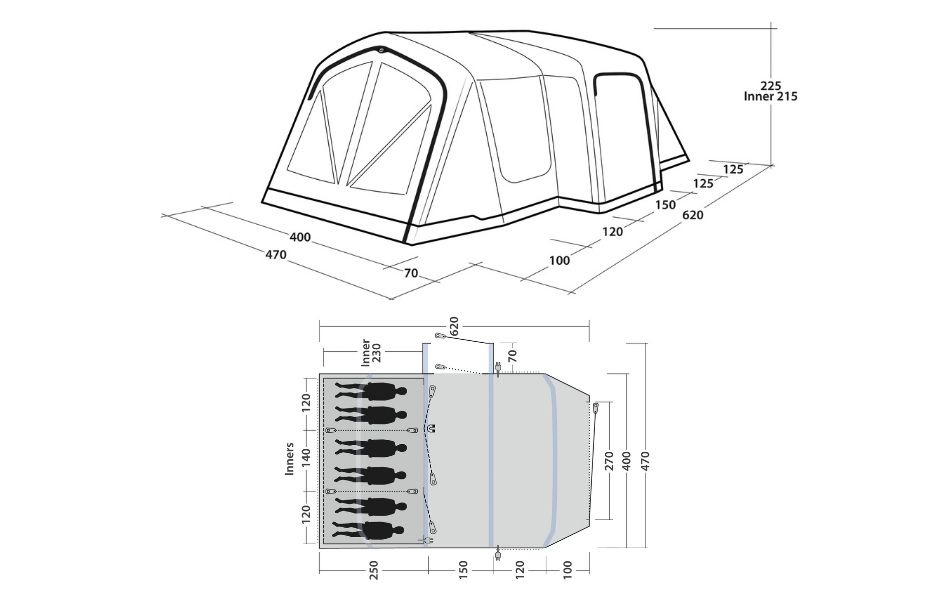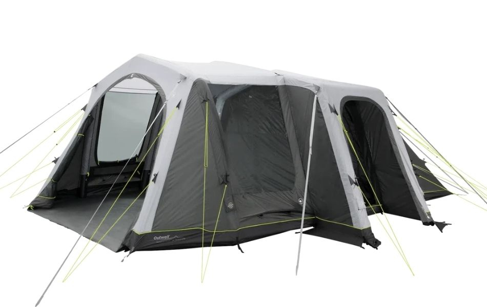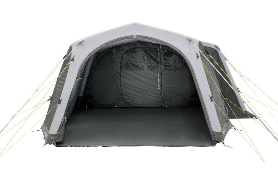 The tent features a fully sewn-in waterproof groundsheet that keeps moisture and dirt out. Pre-shaped air tubes provide good headroom and an airy feel in both bedrooms and living area. With the Rigid Air System, the tent inflates quickly and easily via valves placed outside the flysheet.