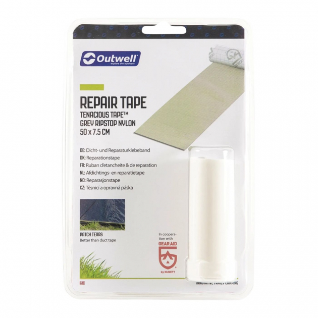 The tape is self-adhesive, flexible and significantly stronger than traditional duct tape. It can easily be cut to size for a precise and discreet repair. The light grey colour blends well with many tent fabrics.