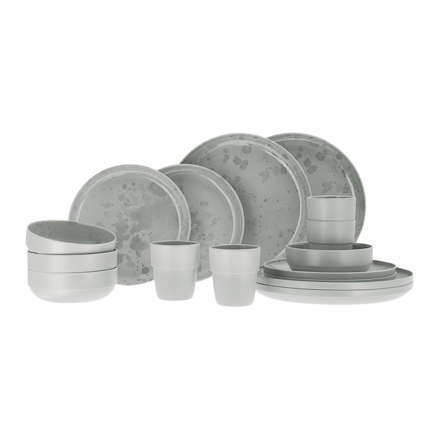 The Palma 16-piece melamine set is designed for campers who want both style and functionality. Made from durable and scratch-resistant melamine with a ceramic-like appearance, each piece features an anti-slip ring on the bottom to prevent sliding. The set includes four cups (200 ml), four bowls (Ø 13 cm), four small plates (Ø 20 cm), and four large plates (Ø 25 cm). The plates have a raised edge for easy stacking and minimal space usage in your camper. Cups and bowls are also stackable. Dishwasher safe (top rack) but not microwave safe.