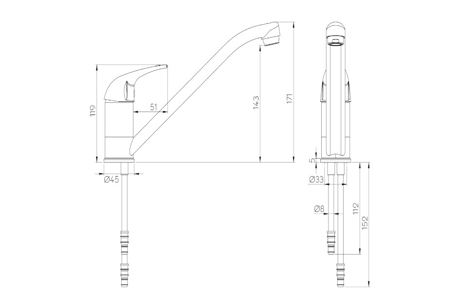 Hose length: 11 / 15 cm