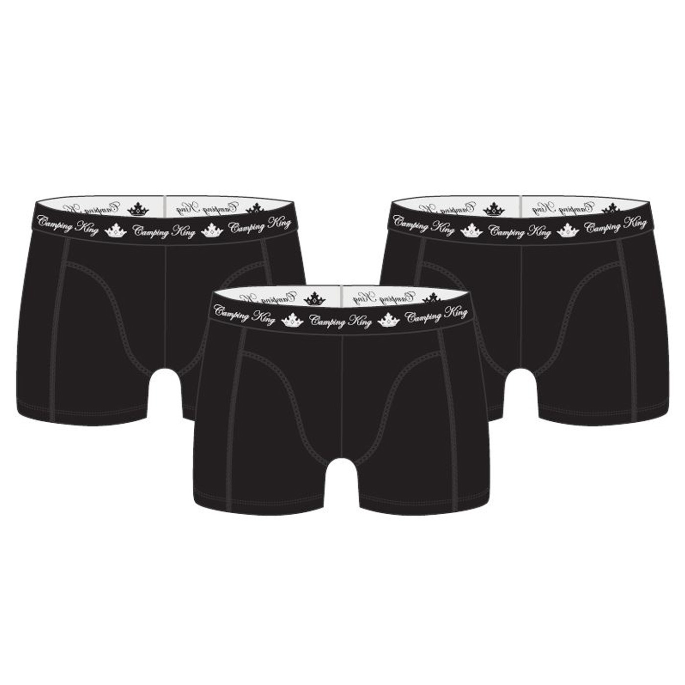 3-pack black boxer shorts with Camping King logo. 95% combed cotton / 5% elastane. Wash at 40°C – do not tumble dry. - Characteristics