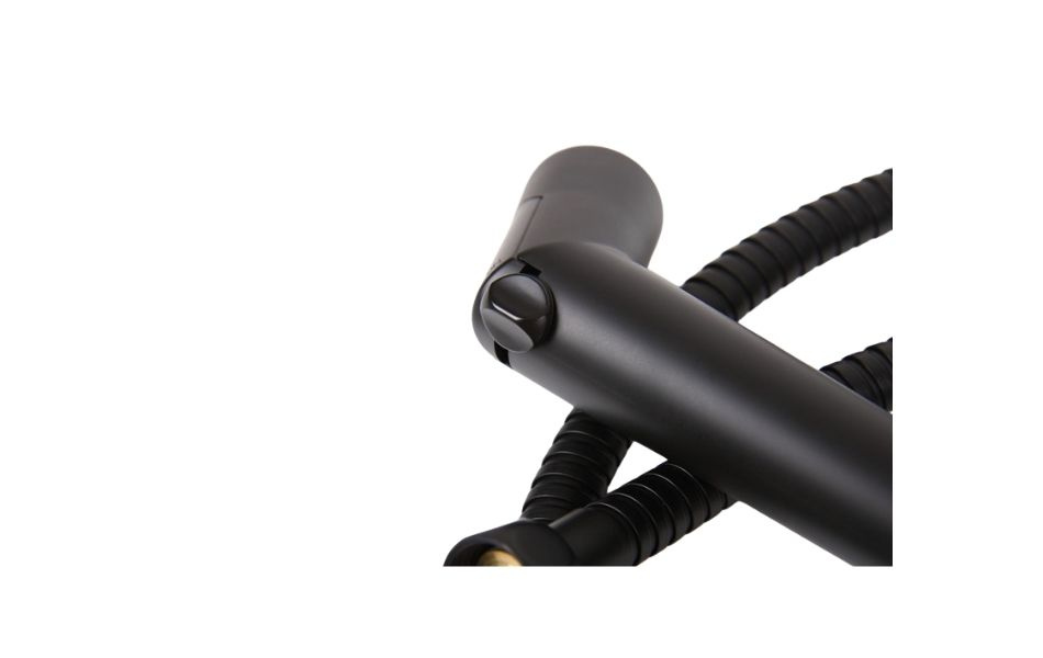 Stylish shower set in matte black design, perfect for motorhomes, caravans, or boats. The set includes a 1/2" connection and 150 cm metal-reinforced hose. The sleek design makes the shower set functional and visually appealing, while the materials ensure long-lasting durability and reliable use.