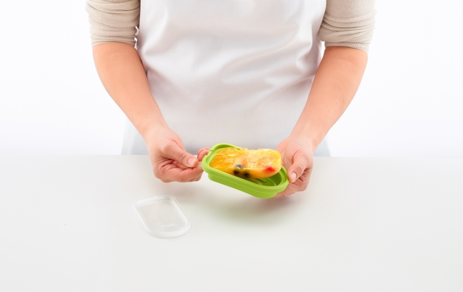 The molds are filled while lying down, which makes them stable and easy to use. Even children can help make their own popsicles. The lid protects the contents from odors and flavors in the freezer.