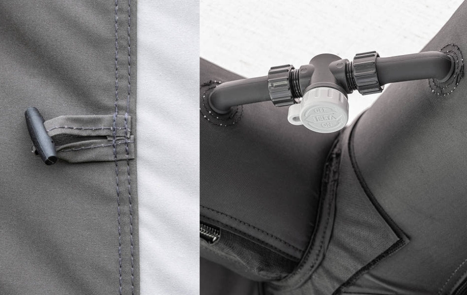 Telta inflatable tents are inflated from a single point. Each of the inflatable channels is connected to one another with valves that allow the awning to be inflated from one point while simultaneously allowing air to be sealed off between the air channels in the event that one channel is damaged. The valves for air release at the bottom of the legs allow the channels to be emptied of air, so it is not necessary to empty them individually.
