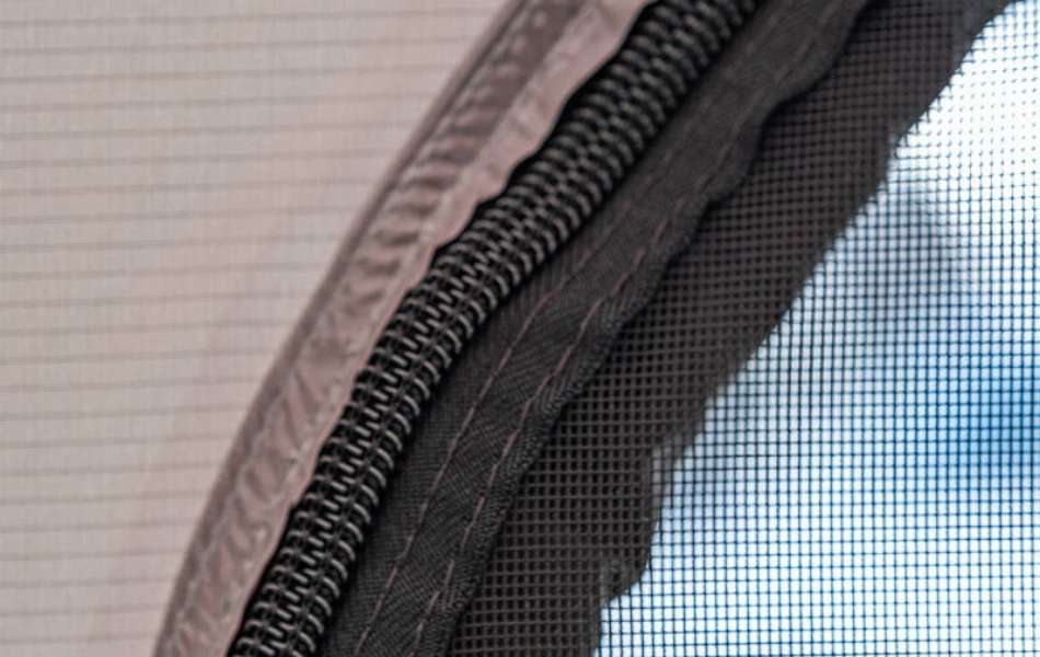 Height adjustment via discreet zips in the side walls, in 15 cm steps without tools
