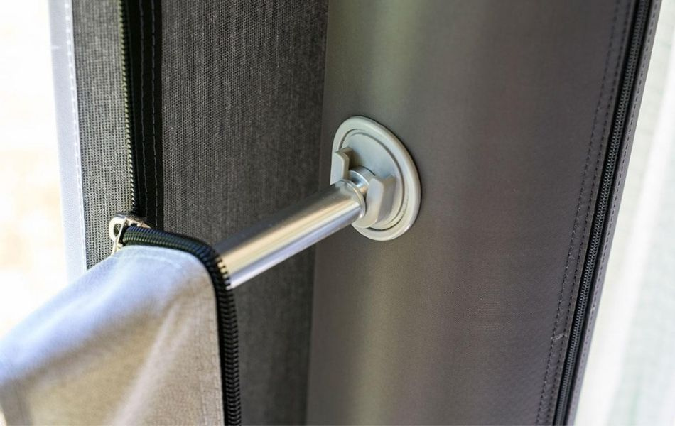 The sides and front panels can be fully opened to convert the awning into a large, open sunshade, or partially opened to create additional doors and ventilation on warm days. Integrated insect screens on the sides provide a pleasant indoor climate without letting bugs in. The included veranda pole allows you to create a cozy veranda if you want a partially open front area.