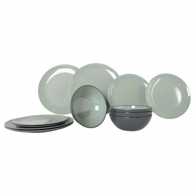 • An elegant gray-green dinnerware set made of 100% high-quality melamine, practically unbreakable and scratch-resistant. The set features a non-slip anti-slip solution. It comes in a storage bag. Dishwasher safe and food-safe approved. Note: Not for microwave use.